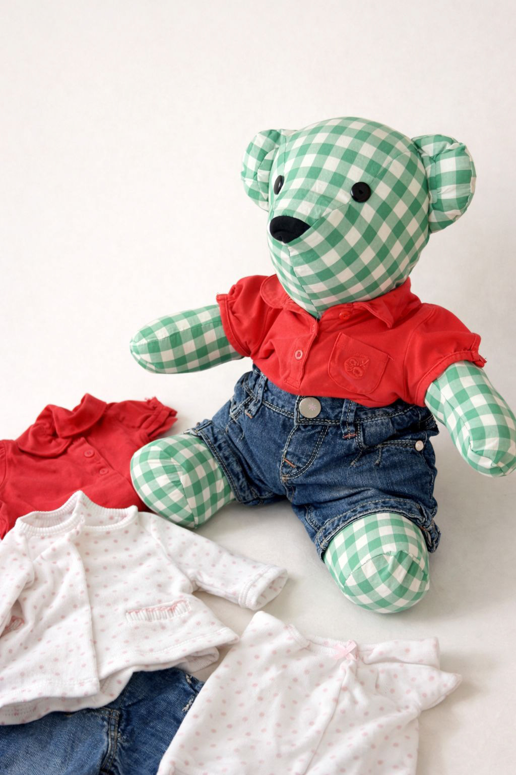 Los osos para recuerdos se elaboran con prendas de tus seres queridos que están presentes en tu vida, como: